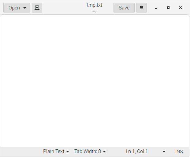 그러면, 다음과 같이 메모장이 나타난다. (예시에선, 파일이름을 "tmp.txt" 라고 지어주었다.)