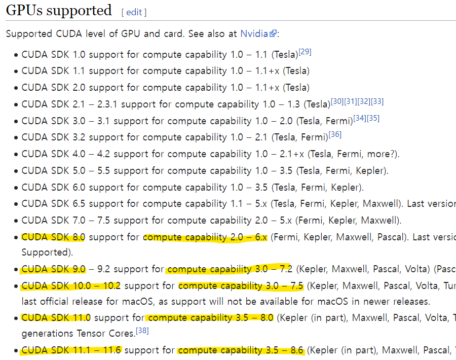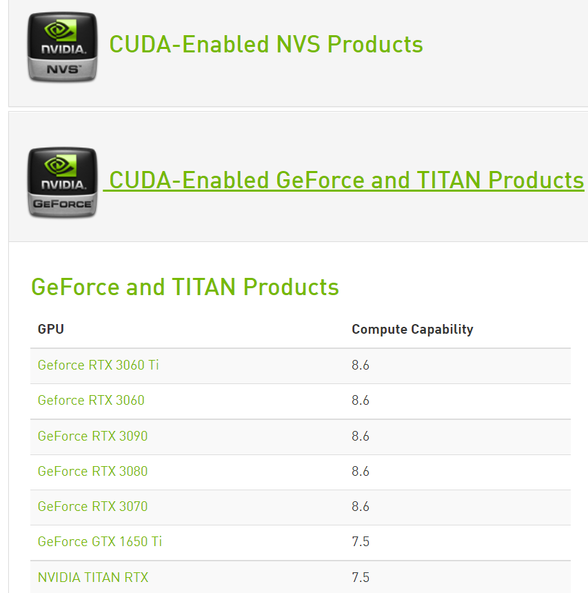 compute capability 를 확인하러 이 사이트에 가보면 -> https://developer.nvidia.com/cuda-gpus