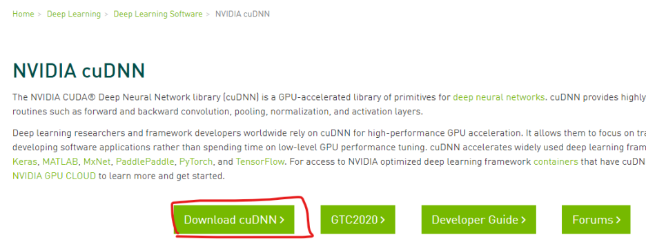 Download cuDNN 을 클릭한다.(여기서 아마 엔비디아 계정으로 로그인해야 할 것이다. 계정이 없으면 회원가입 하길 바란다.)